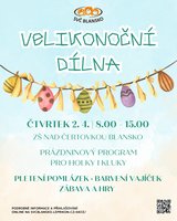 Přijď strávit velikonoční prázdniny k nám do SVČ Blansko. Čeká nás zábavný program, jehož součástí bude pletení pomlázek, barvení a zdobení vajíček různými technikami a samozřejmě také plno her a prima aktivit ve volném čase.